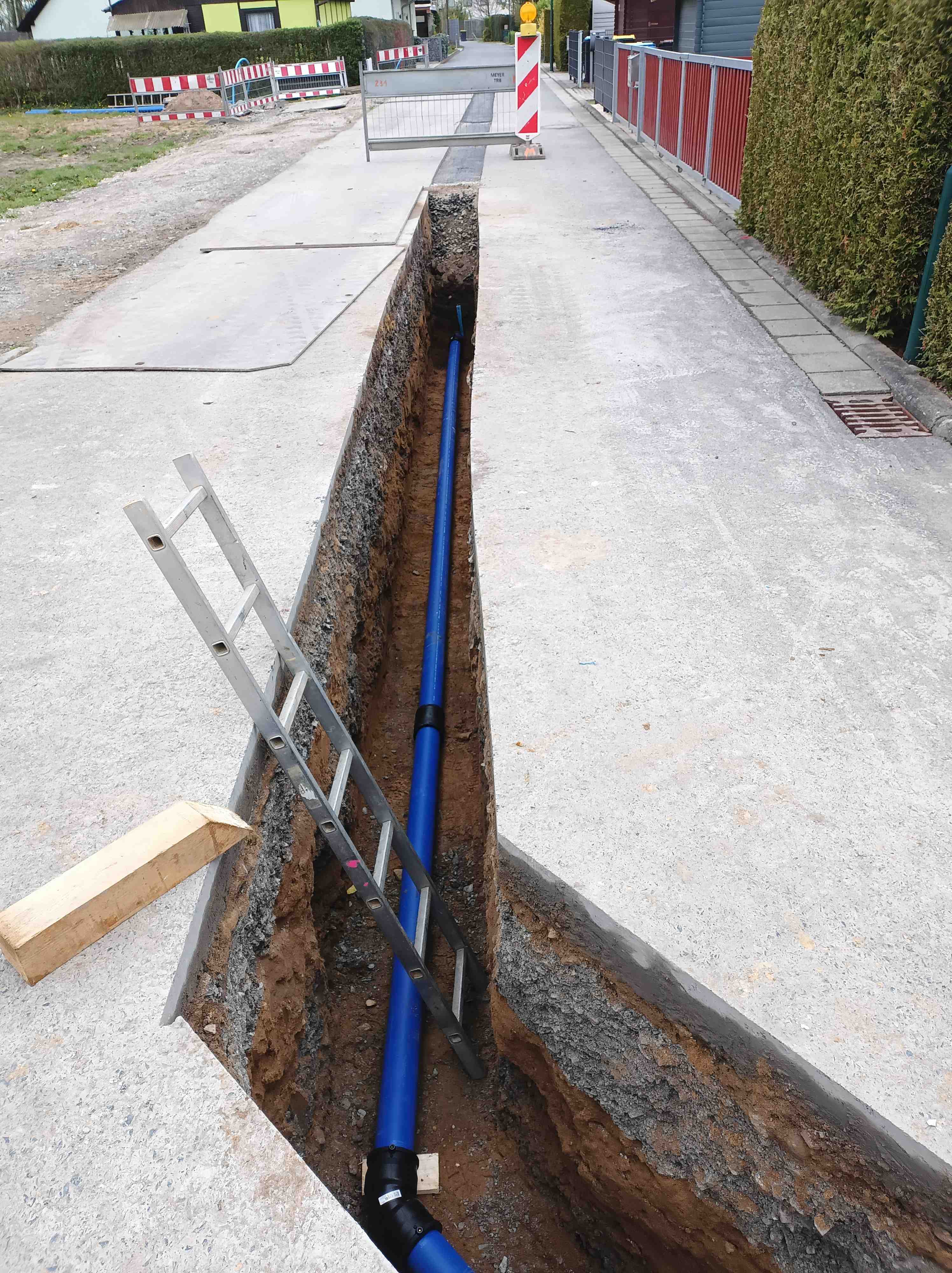 Von Mitte März bis Mitte April 2024 wurde auf einem Teilbereich in der Bahnhofstraße in Lohmen die Trinkwasserleitung erneuert. Gleichzeitig wurden 2 Grundstücke an das Netz der öffentlichen Wasserversorgung vorerschlossen.